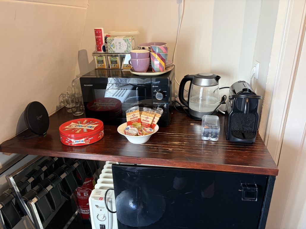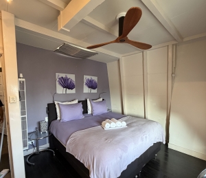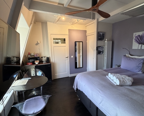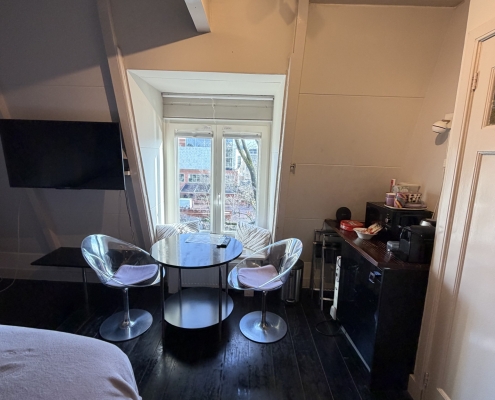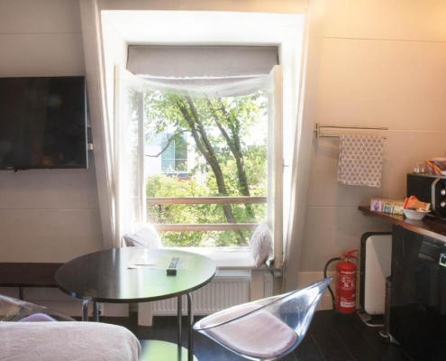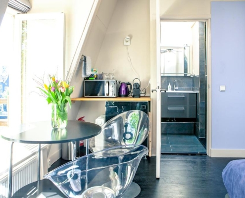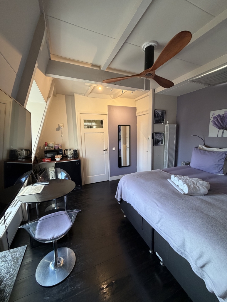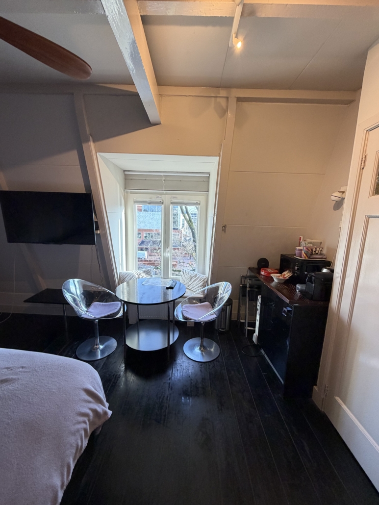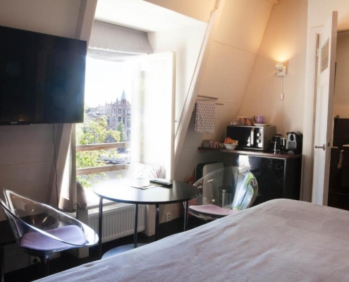 Wake up to the beauty of the Amstel in a bright stylish room on the 4th floor of an authentic canal house. Relax in comfort in a King Bed and a private bathroom, also there is complimentary coffee, tea and some snacks. A peacefull stay, yet right in the heart of the old city. A fresh breakfast is served just downstairs in one of the two welcoming café`s.